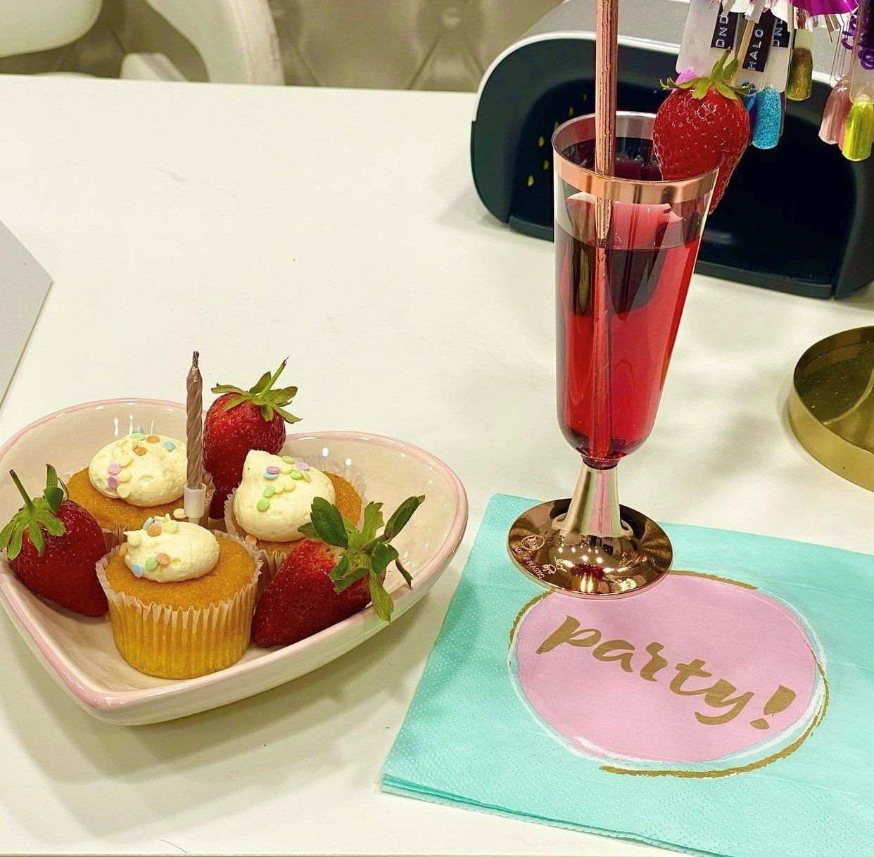 The children will be greeted with cupcakes, kids fancy drink, and a birthday card for the birthday girl. The birthday girl will choose which service she would like to do first.