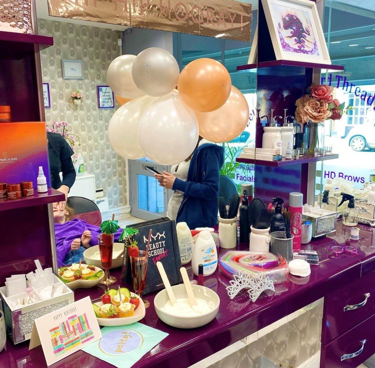 Depending on which package you will choose, we will decorate the salon station and/or nail desk with birthday banners, balloons, and decorate the salon chairs with pink ribbons.